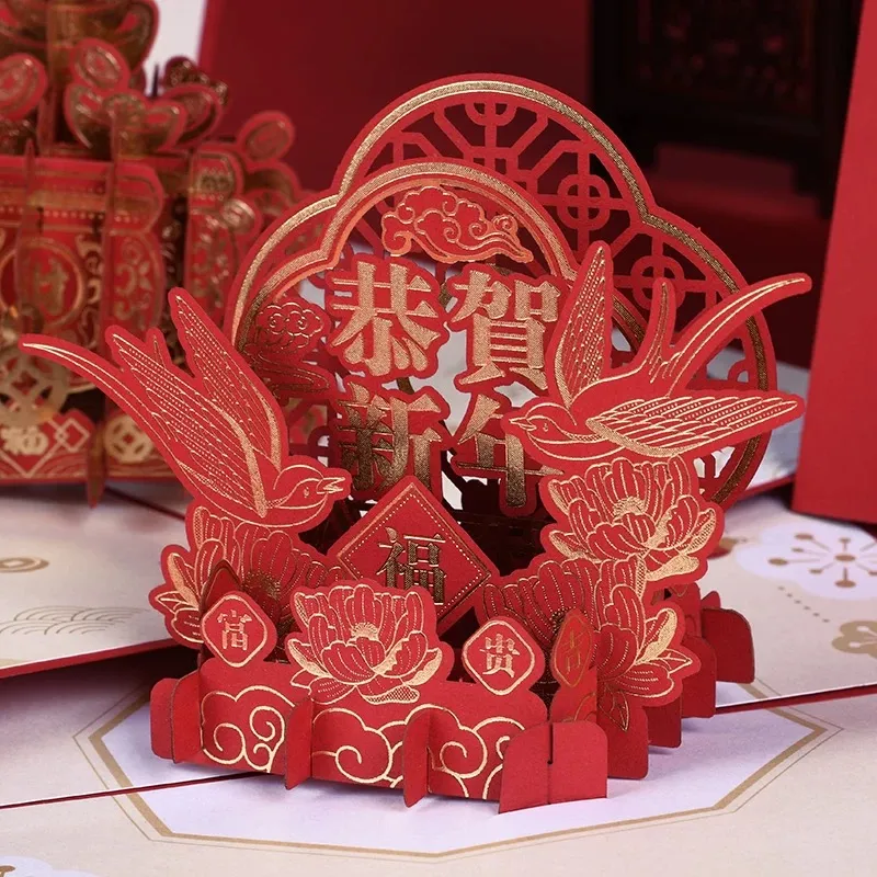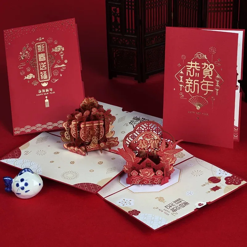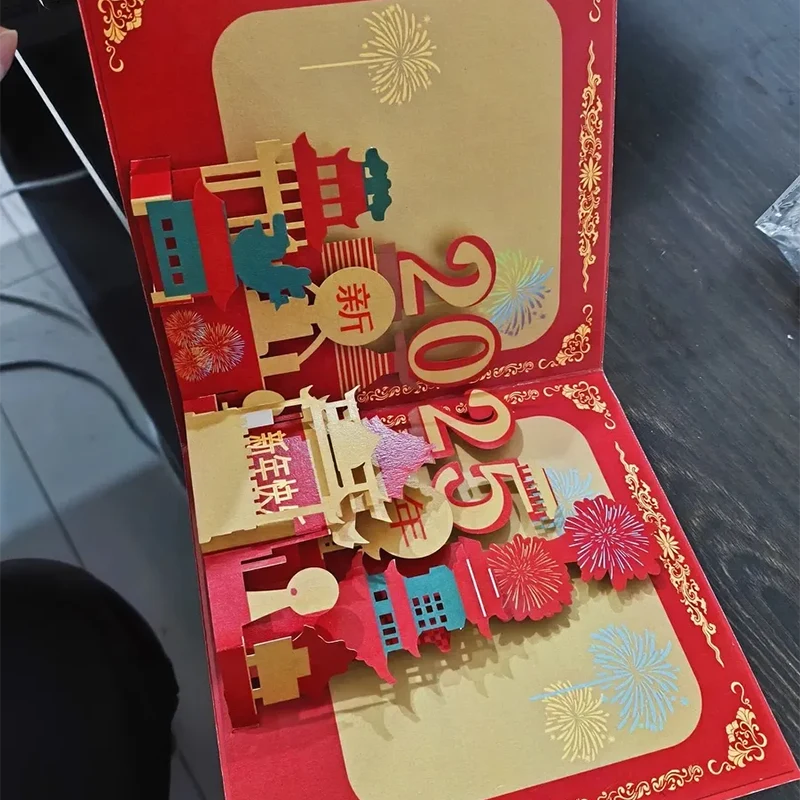 नया साल 3 डी पेपर कार्ड एक तीन-आयामी पेपर कार्ड है जिसे विशेष रूप से नए साल के समारोह के लिए डिज़ाइन किया गया है। वर्ष 3 डी पेपर कार्ड आधुनिक पेपर आर्ट तकनीक के साथ पारंपरिक ग्रीटिंग कार्ड के सार को जोड़ता है। अद्वितीय तह और काटने की तकनीकों के माध्यम से, यह एक नए साल के थीम पैटर्न को तीन-आयामी और गतिशील प्रभाव के साथ प्रस्तुत करता है, जो नए साल के उत्सव में एक अलग तरह के आश्चर्य और आशीर्वाद को जोड़ता है।