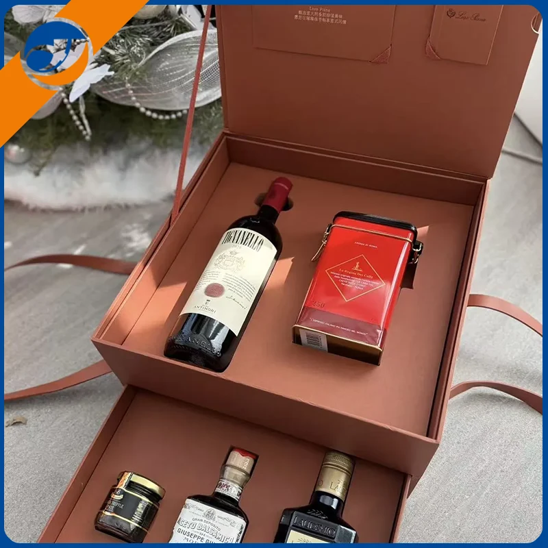 वाइन बॉक्स पैकेजिंगपेपर/कार्डबोर्ड: एफएससी-प्रमाणित पर्यावरण के अनुकूल कार्डबोर्ड मुख्यधारा, पुनर्नवीनीकरण और बायोडिग्रेडेबल है, जिसका उपयोग अक्सर अर्थव्यवस्था या मध्य-रेंज पैकेजिंग के लिए किया जाता है।